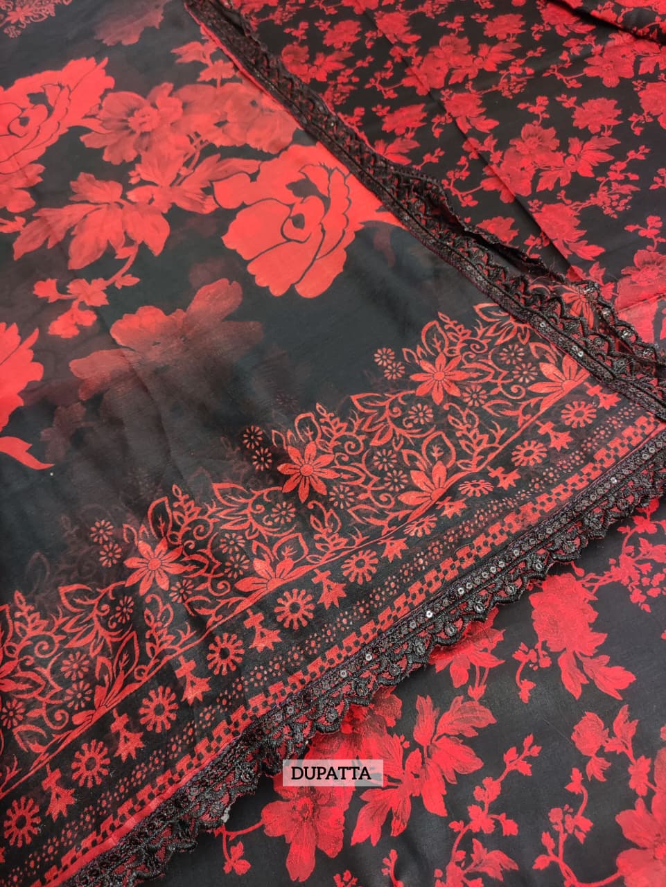 • 4-Sided Embroidered Printed Chiffon Dupatta