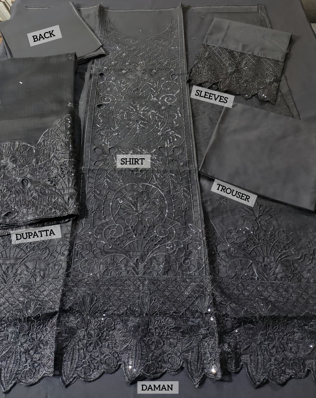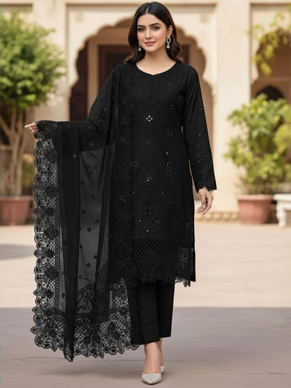 Cotton Heavy Embroidered Chicken Karri Dress With 4-Sided Embroidered Chiffon Dupatta (Unstitched) (ST388)