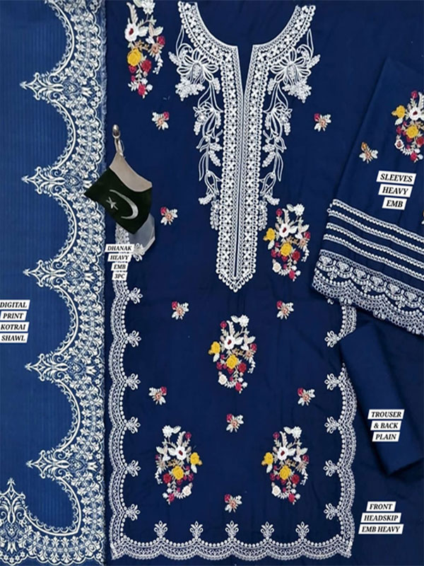 Dhanak Heavy Embroidered Dress With Kortai Printed Shawl (Unstitched) (ST282)