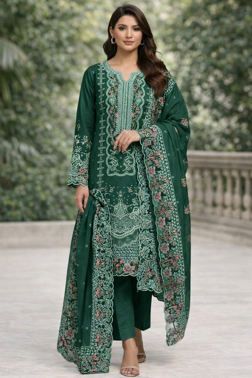 Elegant Boring Chickenkari Lawn Cotton Heavy Embroidered Dress With Embroidered Chiffon Dupatta (Unstitched) (ST462)