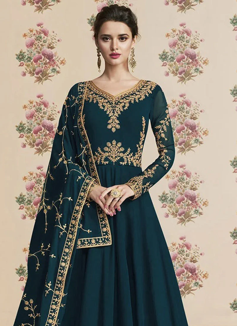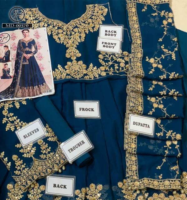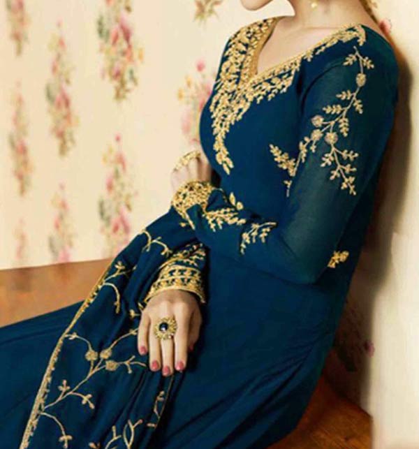Front: Fully embroidered chiffon body with delicate neck detailing that adds a regal touch