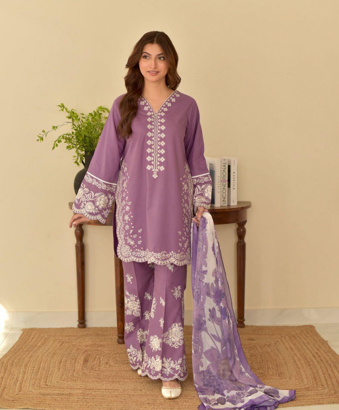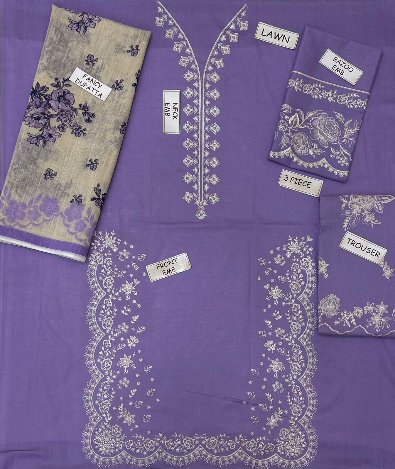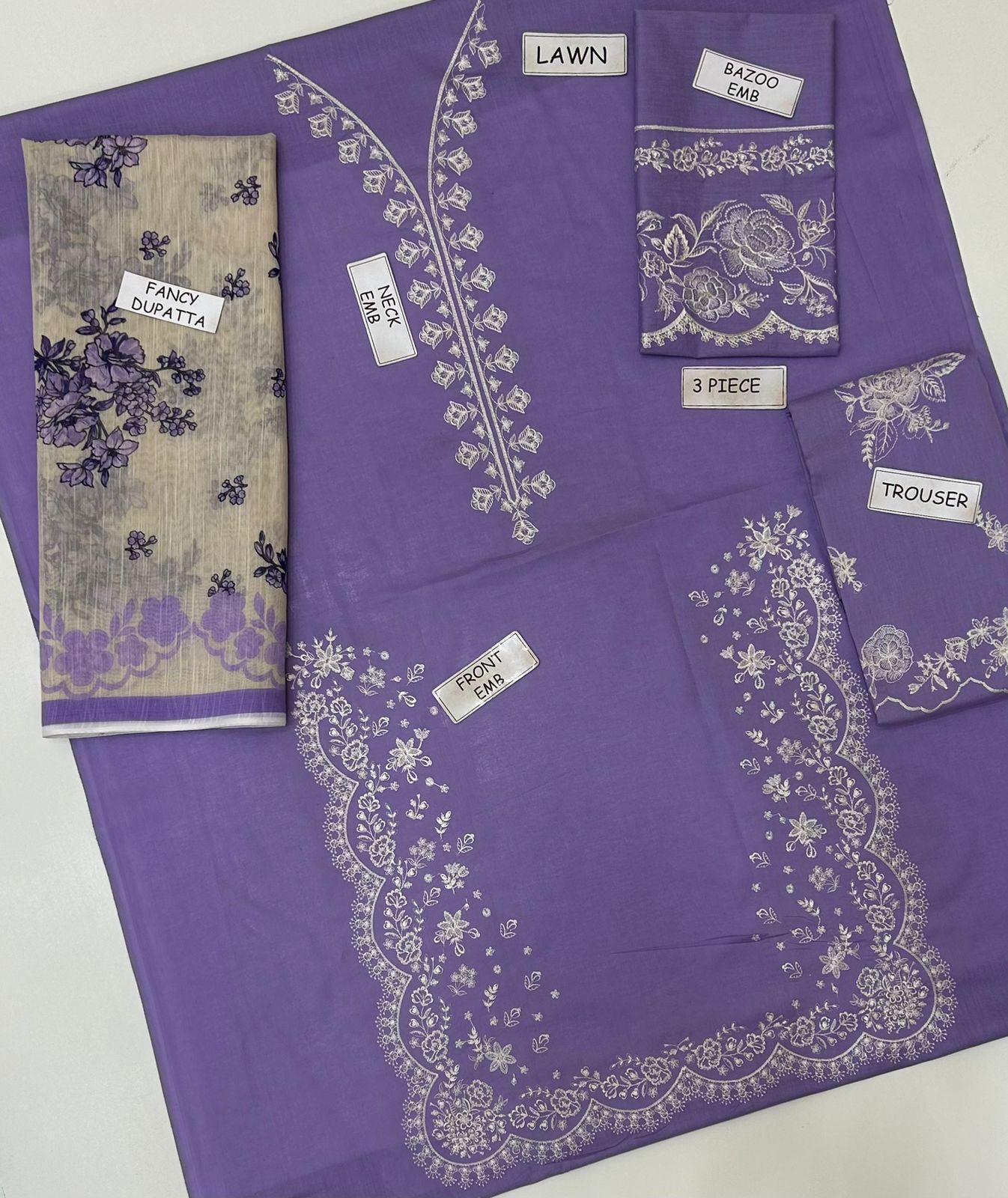 Lawn Heavy Embroidered Dress Embroidery Trouser Printed Banarsi Dupatta (Unstitched) (ST464)