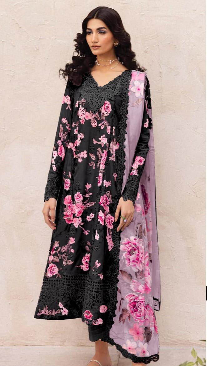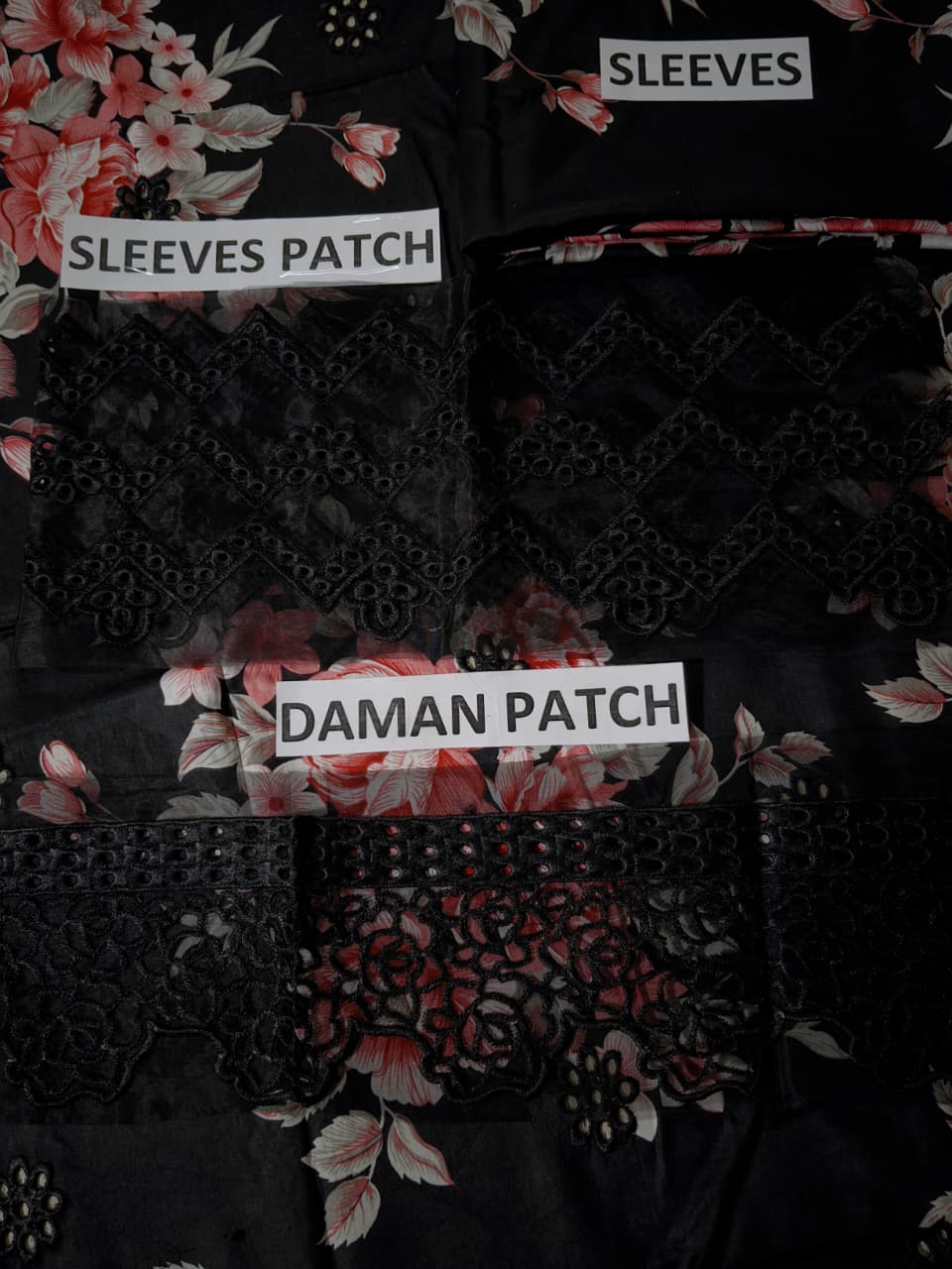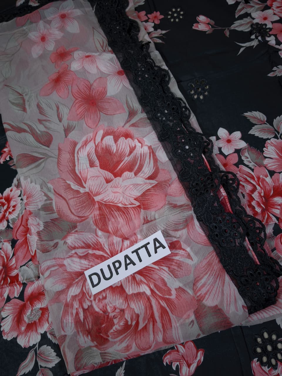 •Digital Printed Chiffon Dupatta With 4 Sided Embroidered Laced