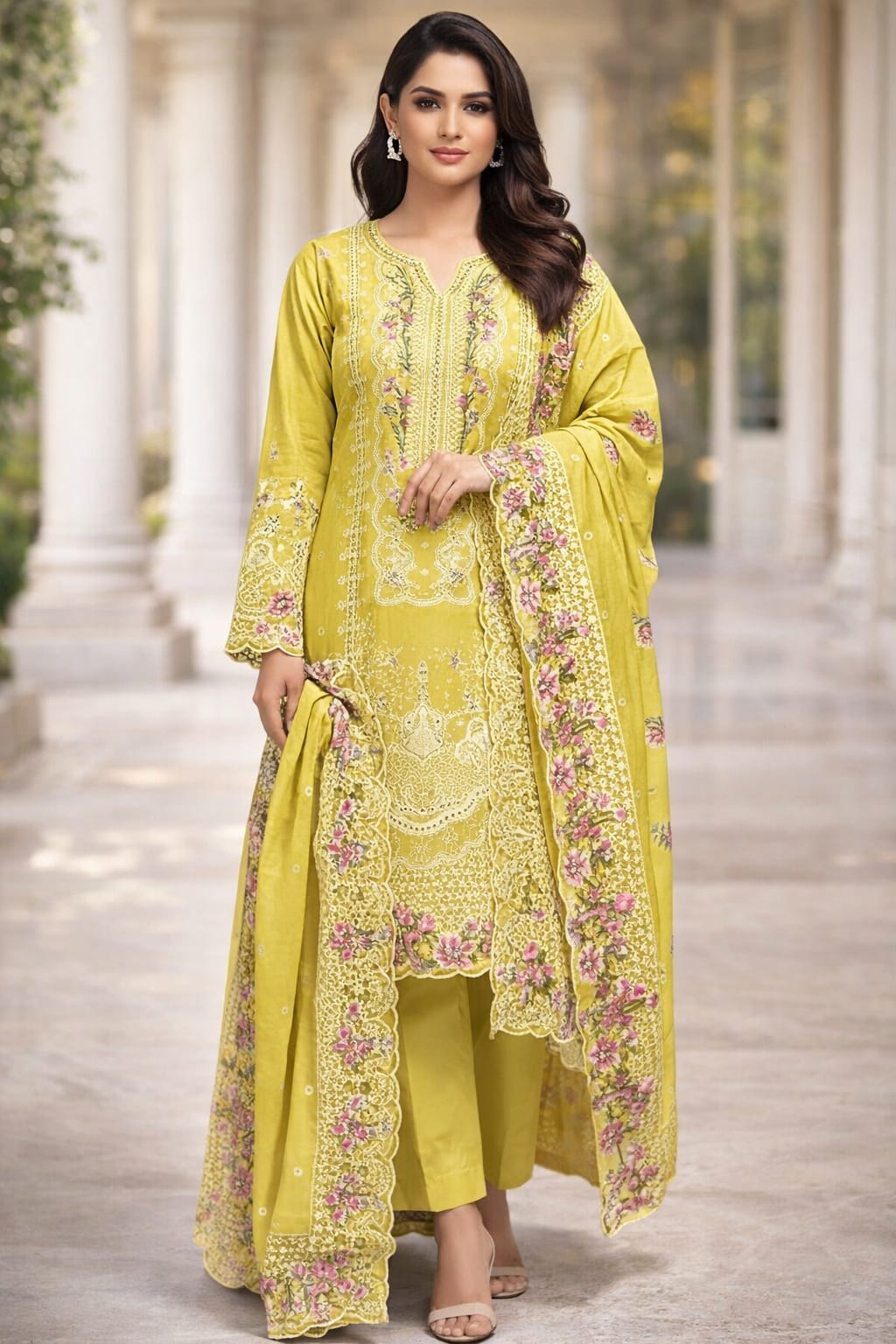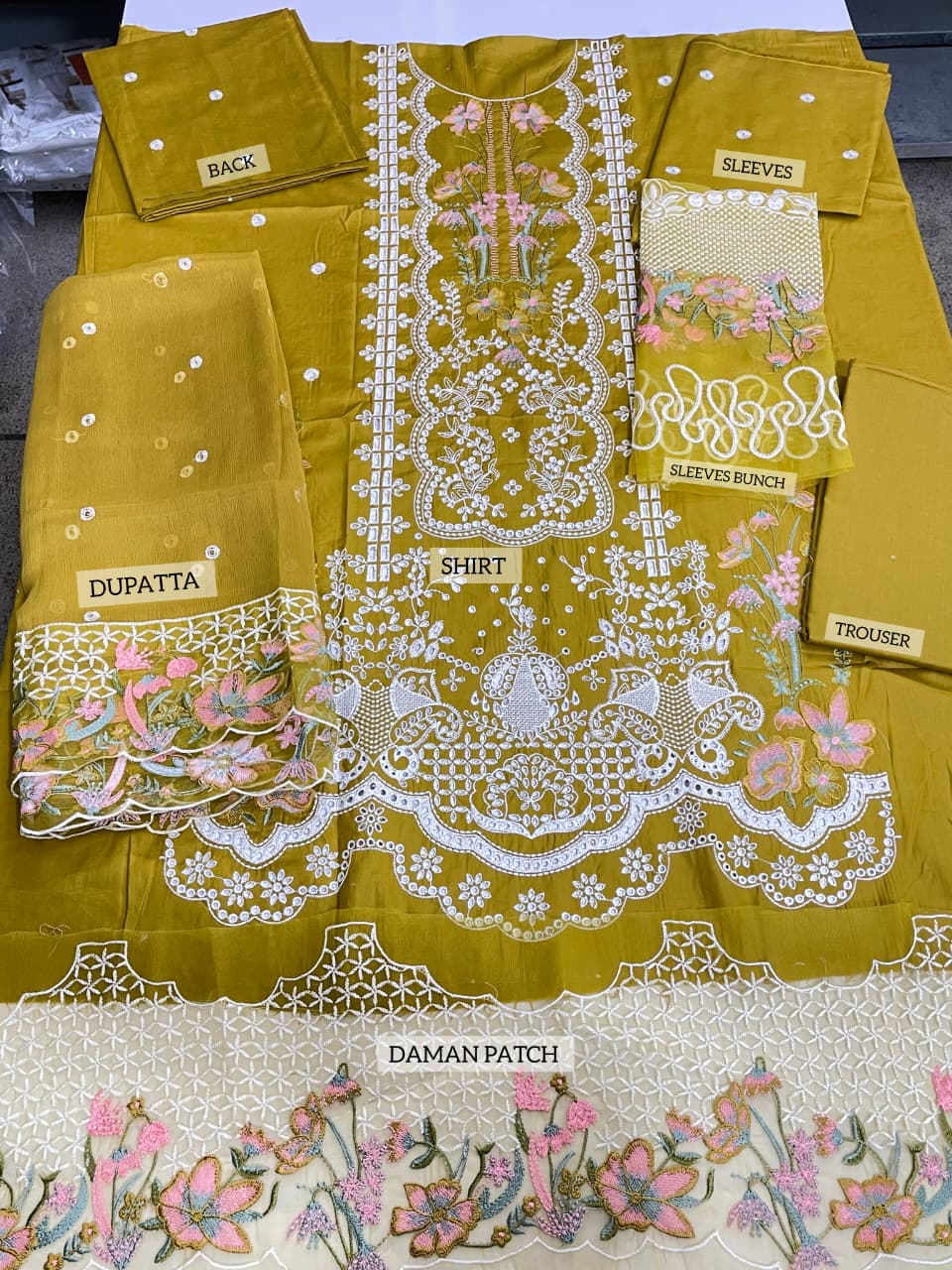 Luxurious Boring Chicken Karri Cotton Dress Chiffon Embroidered Dupatta (Unstitched) (ST427)