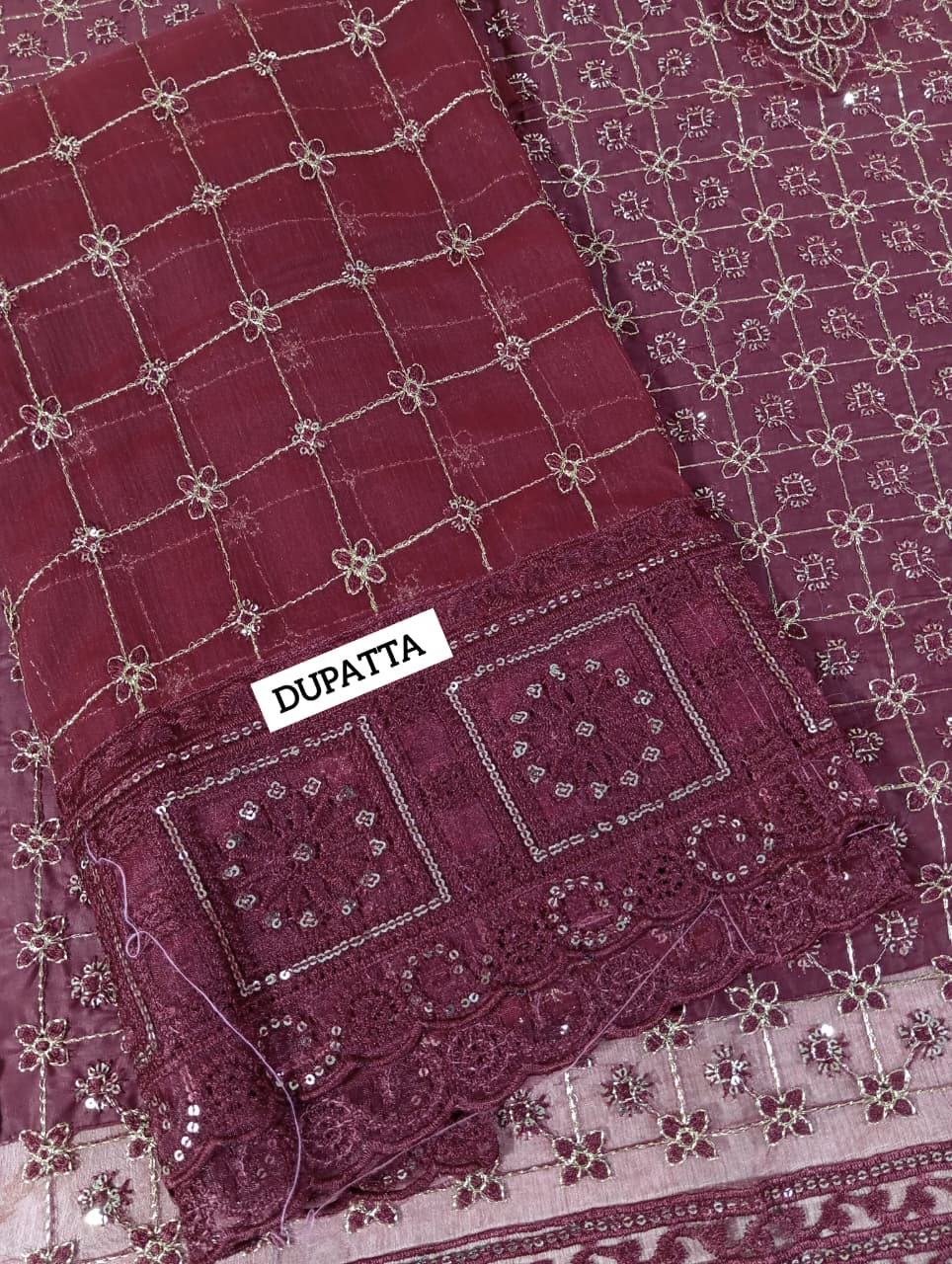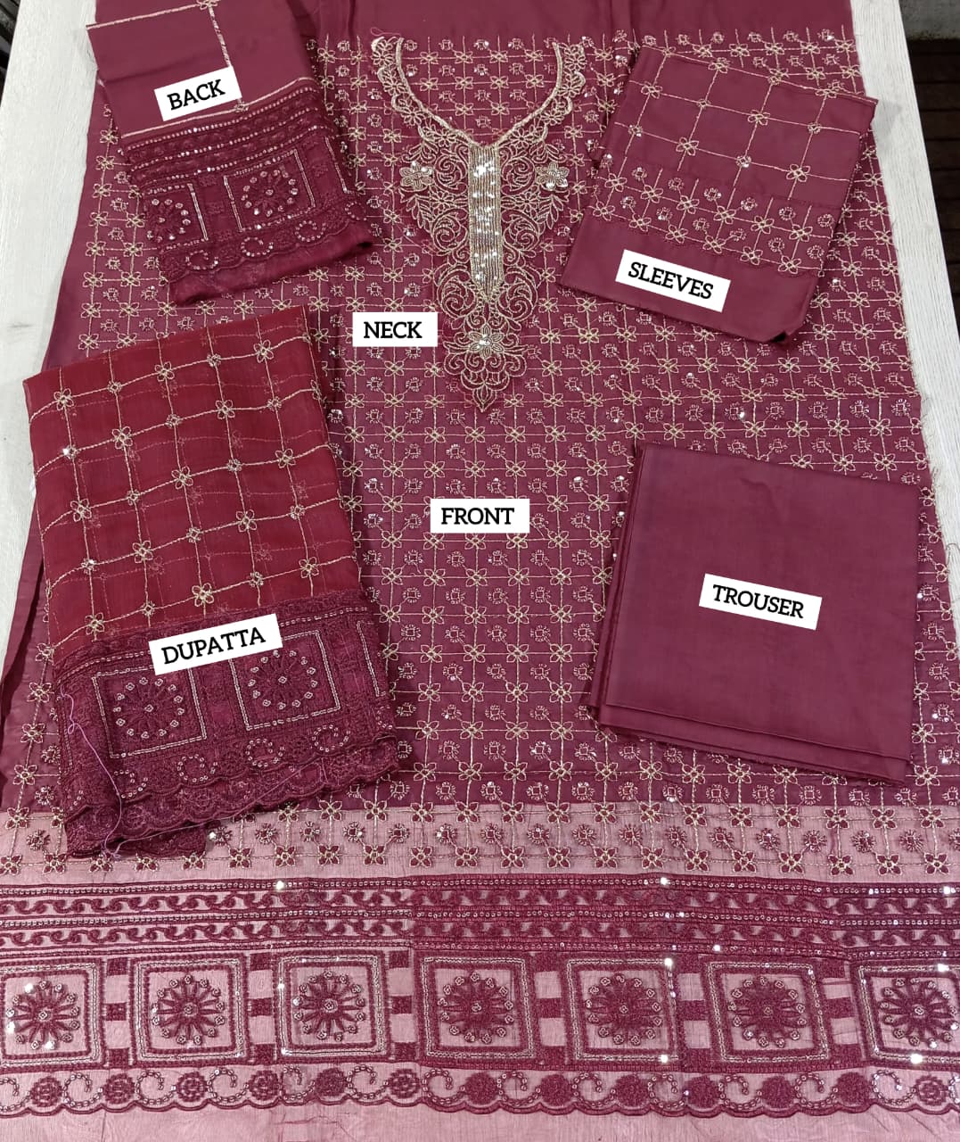 Luxury Cotton Sequence Embroidered Dress With Chiffon Sequence Embroidered Dupatta (Unstitched) (ST372)