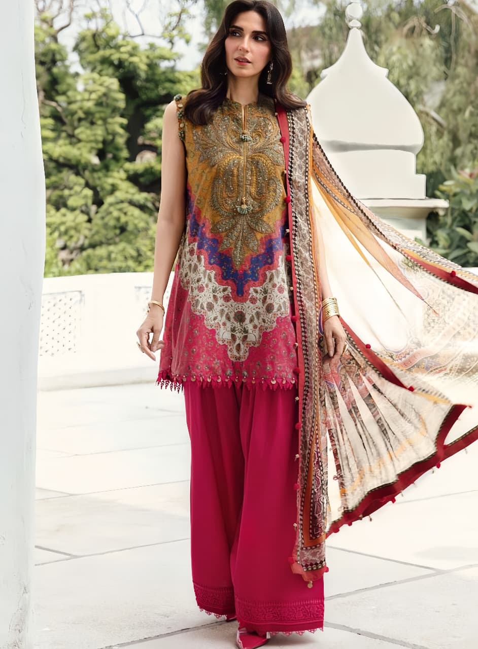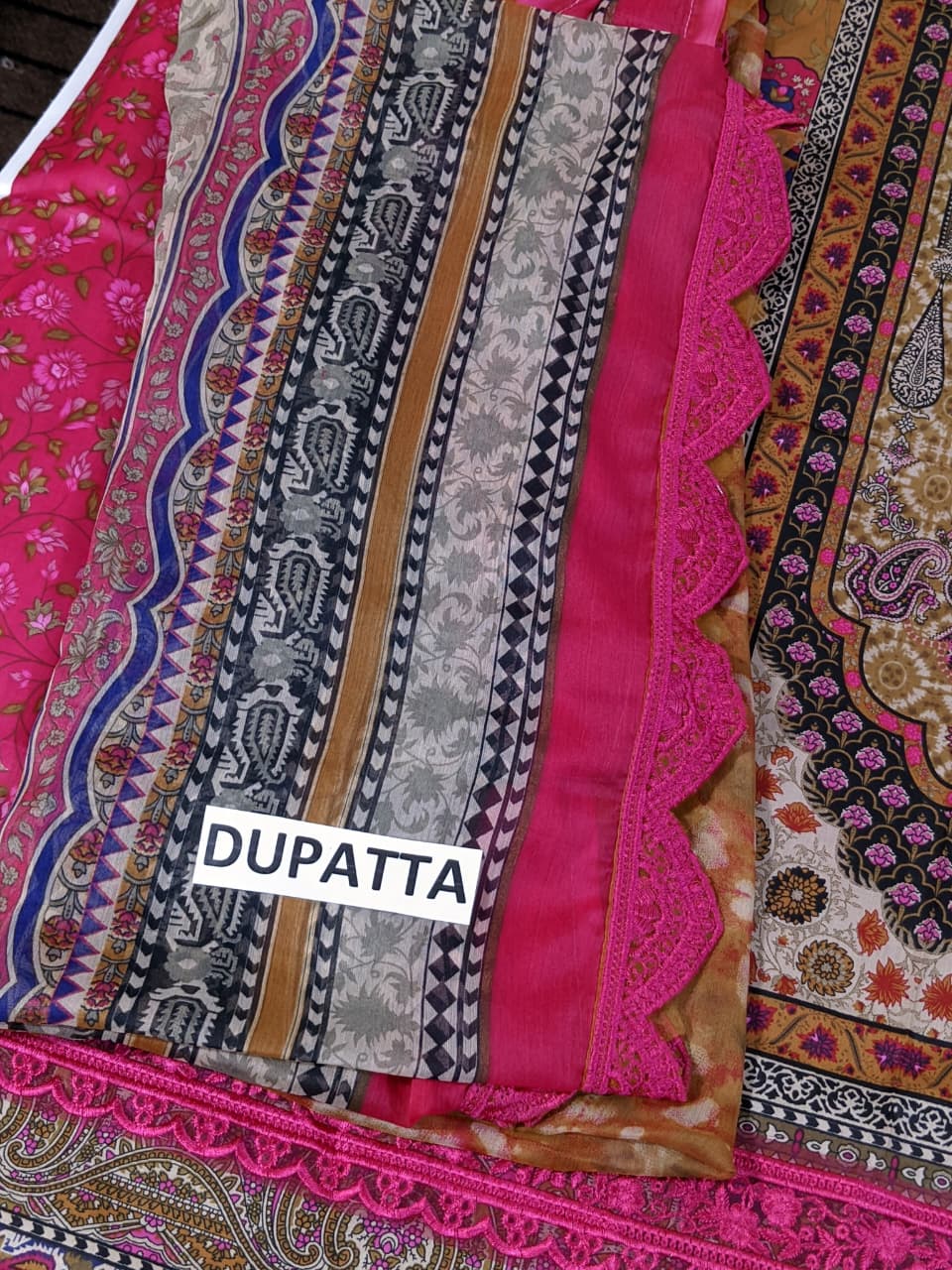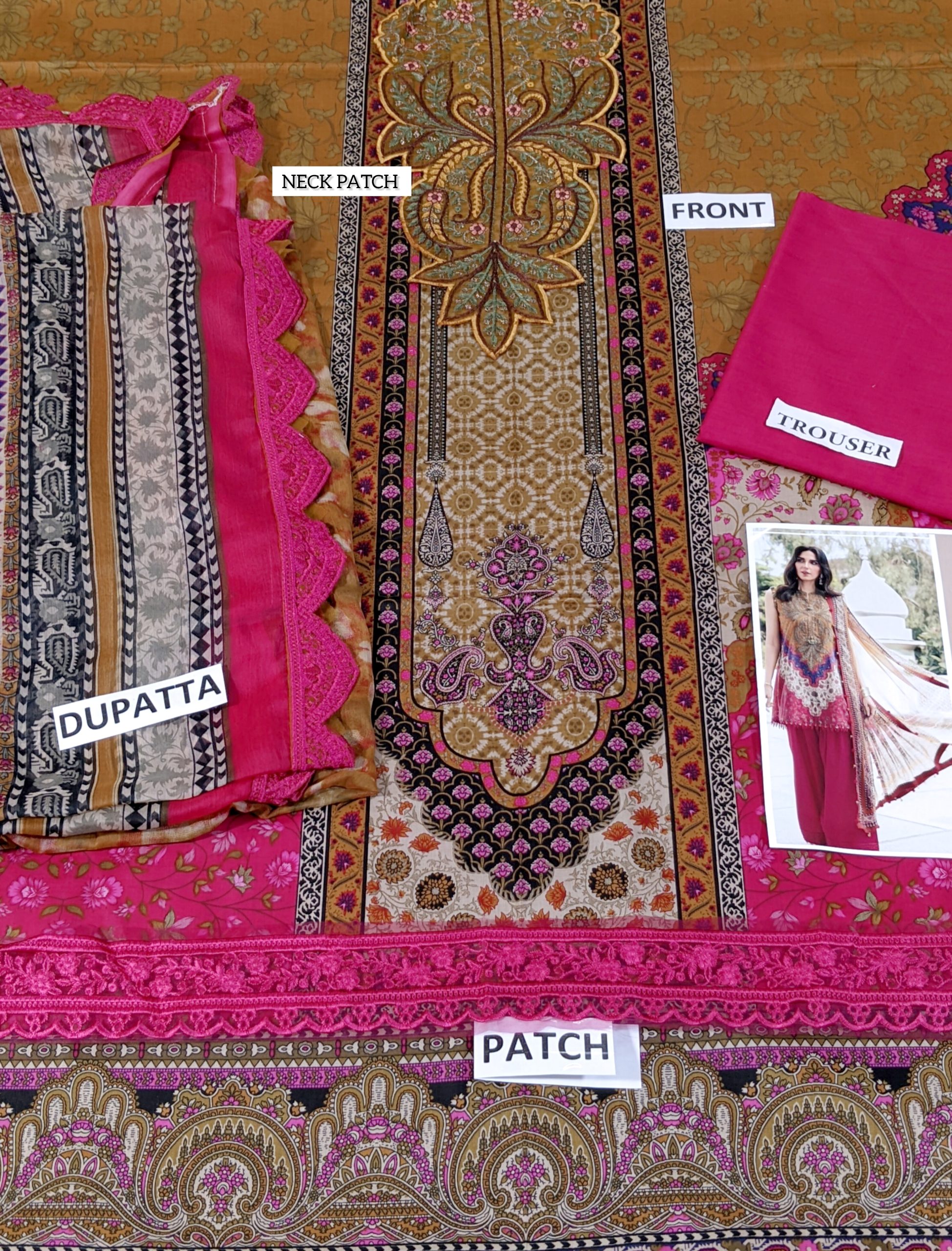 Luxury Digital Printed Lawn Embroidered Dress With Printed 4-Sided Chiffon Dupatta (Unstitched) (ST371)