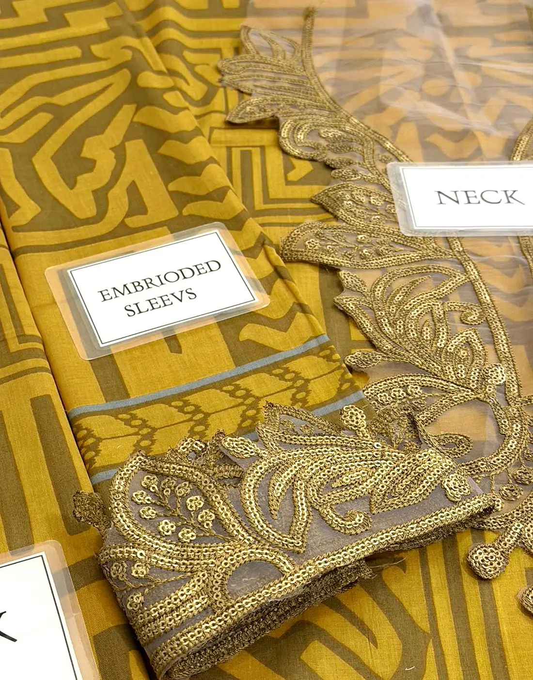 Sleeves: Printed Lawn Sleeves with Embroidered Patches