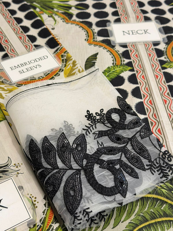 • Sleeves: Printed Lawn Sleeves with Heavy Embroidered Spangle Work Sleeves Border